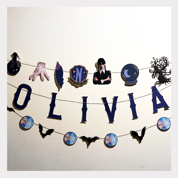 El nombre / frase y formas temáticas hasta 10 letras por tira. Impresos en cartulina de colores 230 gsm. Troquelados.