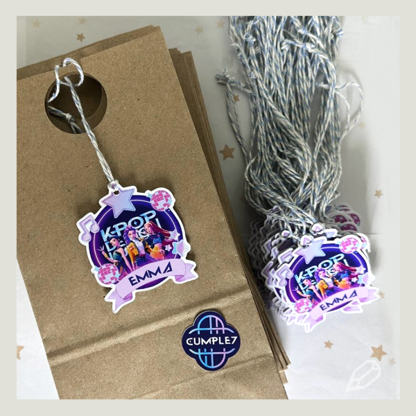Bolsas de papel craft perforadas con tag y sticker en la temática que prefieras.