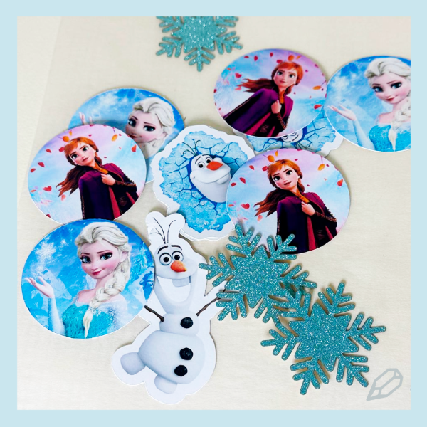 Vienen con cinta bifaz para poder pegarlo y decorar la mesa dulce. Diseño temático
