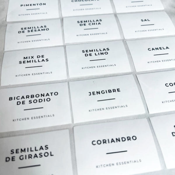 15 etiquetas con el listado que necesites, son de 6x4 cm y tienen una película protectora mate, resistente al agua y troqueladas. Envianos un mensaje con la lista.