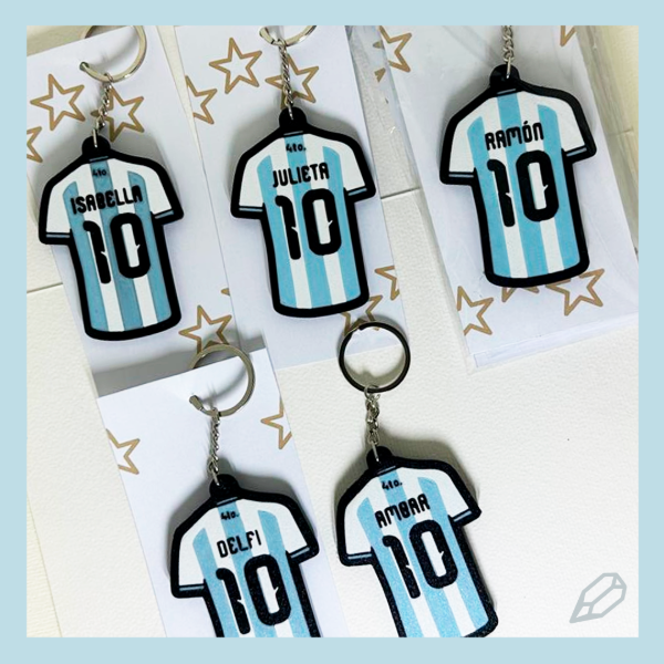 Hechos en plástico ecológico. Personalizado con nombre. Incluye llavero con dije para colgar.
